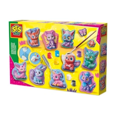 Discover the joy of crafting with the Casting and Painting - Cute Fantasy Figures set. Create 11 whimsical figurines including dragons, a unicorn, a bunny, and more. Includes plaster, a wooden spatula, and a detailed casting mold for easy crafting. Decorate with 6 vibrant paints and silver glitter glue for magical designs. Perfect for kids and adults who love creative painting and crafting fun!