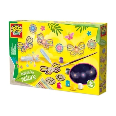 SES Creative 14039 Light String Inspired by Nature Craft Kit for Kids Aged 6+ Decorate 8 Wooden Butterflies and Flowers with 6 Trendy Paint Colors
