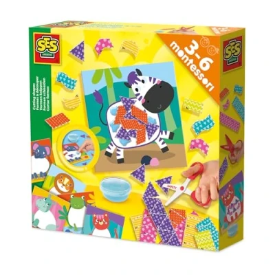 SES Creative 14061 Montessori Cutting Shapes Play Kit for Kids Aged 3+ Safe Materials Craft with 6 Cut Out Cards, 2 Scissor Skill Cards and Finger Glue