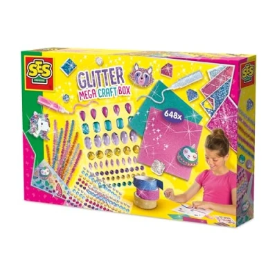SES Creative 14139 Glitter Mega Craft Box Kit for Kids Aged 5+ Includes 65 XL Diamond Stickers, 360 Round Stickers