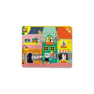 Master locks with SES Creative's I Learn Latches Board, perfect for young problem solvers. Includes a wooden lock board with 3 different doors and latches. Made from sustainable materials, suitable for children aged 3 and up. Encourages problem-solving and fine motor skills as kids figure out how to open the latches. Ideal for educational play and skill development, keeping kids engaged with latch activities., Manufacturer: SES