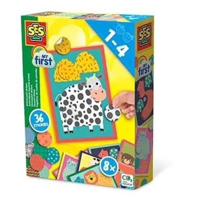 Create fun animal prints with SES Creative's My First Animal Print Stickers, perfect for young children. Includes 8 cards and stickers for creating unique animal print designs. Made from safe, non-toxic materials, suitable for children aged 1 and up. Encourages creativity and fine motor skills as toddlers create their own animal print stickers. Ideal for early learning and creative play, keeping toddlers engaged with fun sticker activities., Manufacturer: SES Creative