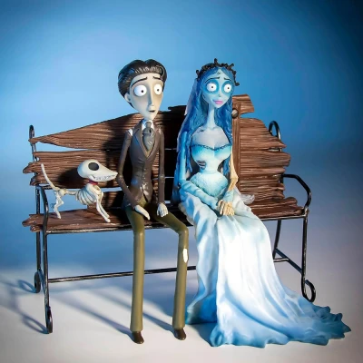 Celebrate the magic of Tim Burton’s beloved film with the SD Toys 25th Anniversary: The Corpse Bride Victor, Emily, and Scraps 1:10 Scale Figure Set. This exquisite set captures an iconic moment from the movie, featuring Victor Van Dort and Emily sharing a poignant moment seated on a bench crafted from a wooden coffin. Accompanied by Scraps, the loyal and bony canine from the afterlife, this meticulously sculpted and painted figure set brings the enchanting world of The Corpse Bride to life with unparalleled detail. Each character in the set is rendered with intricate artistry, showcasing the timeless charm of Burton’s creation. The figures reflect the film’s hauntingly beautiful aesthetic, making it a must-have for collectors and fans alike. Perfect for display, this 1:10 scale set pays homage to a classic scene, capturing the essence of love and loyalty that defines this unforgettable tale.
