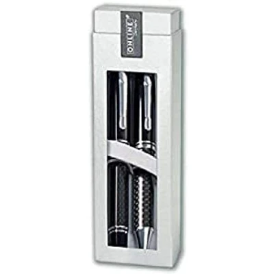 gift set including high-quality fountain pen and ballpen in carbon design with precious metal parts fountain pen with iridium nib M, ballpen with twist mechanism fountain pen suitable for standard ink cartridges and converter, ballpen suitable for standard king size refills in elegant gift box