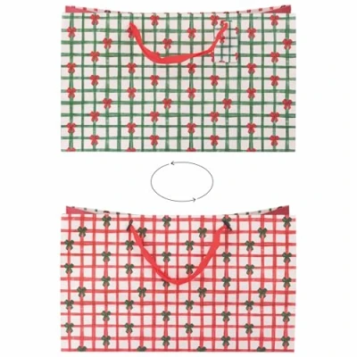 Christmas gift bag with bows. Made of paper, 2 polyester handles. Double Christmas decoration. Size: L. 39 x 15 x H 23cm 210gsm Colour: White, Red and Green Christmas Gift Bag with Bows Paper 210gsm 2 polyester handles; Color: white, red and green Double Christmas Decor