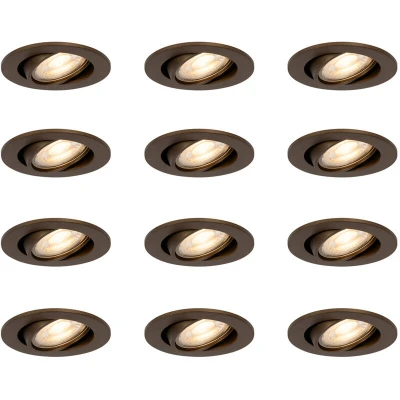 General description With this set of 12 tiltable Cisco recessed spotlights in dark bronze, you can create an atmospheric, luxurious look in your entire interior. The timeless, round design in deep bronze adds a warm, stylish touch to any room, while the tiltable function allows you to direct the light exactly where you need it. Ideal for larger rooms such as the living room, kitchen, or hallway, these spotlights are perfect for highlighting certain accents or creating a cozy lighting scheme. Technical specifications Bulb holder: GU10 Max power: 12 x 35 W Voltage: 230 V Connecting voltage: 220V/230V Protection class: IP20 Dimmable: Yes (dimmer not included) Lightsource: Exclusive Usage This versatile set is suitable for various living spaces including indoor lights, dining rooms, hallways, offices/work areas, bedrooms, stores/showrooms, living rooms, and kitchens. Finish off the look of your interior with this elegant set of spotlights. Other information
