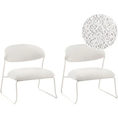 Two Upholstered Armchairs without Armrests. This pair of armless chairs blends contemporary aesthetics with everyday functionality. Solid metal construction ensures stability, while cushioned seats wrapped in long-lasting fabric provide lasting comfort. Their clean, streamlined look fits effortlessly into living rooms and bedrooms, offering versatile seating that feels both practical and inviting. Details: Product Type: Armchair General Color: White Frame Colour: White Shade: Off-White Material Type: Fabric Main Material: Fabric Additional Material: Iron Filling Material: Foam Legs material: Metal Seat Material: Fabric Material Composition: 81% Polypropylene Arm Style: Armless Armrests: No Leg Caps/ Pads: No Pattern: Solid Reclining: No Seat Construction: Plywood Seat Foam Density: 28 kg/m3 Dimensions: Depth: 61 cm Seat Thickness: 10 cm Seat Height: 43 cm Width: 64 cm Height: 71 cm Seating Surface: 60x58 cm Weight: 8 kg Weight Capacity: 120 kg Offer Includes: 2 x Armchair Key