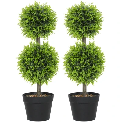 Set of 2 Artificial Topiary Cypress Ball Trees with Pot and Pebbles Homcom