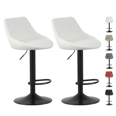 【Premium PU Leather & Sturdy Metal Base】 The cushioned seat is upholstered in high-quality PU leather for durability and easy cleaning. The sturdy metal base ensures stability and supports up to 120kg 【Adjustable Height & Swivel Design】 These bar stools feature a smooth gas lift mechanism to fit countertops of different heights. The 360°swivel stools also allow you to chat with your friends or work with different files more freely, while the built-in footrest provides extra comfort. 【Modern & Space-Saving Design】 With a sleek, minimalist style, these stools complement modern kitchens, bars, and office spaces. The compact design fits neatly under counters when not in use. 【Shell Back Design】This set of 2 barstools has a shell back design that adds elegance to your room and can be easily integrated with various decoration styles due to the neutral color. 【Easy Assembly & Versatile Use】 Comes with all necessary tools and instructions for quick setup. Perfect for dining rooms, kitchen islands, home bars, cafes, or office break rooms.