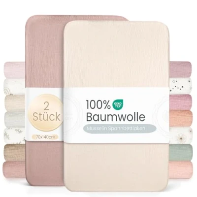A soothing hug for your little one - These fitted sheets are made from 100% high quality muslin cotton that feels extra soft and comfortable while being gentle on your child's delicate skin. Best fit without slipping - lulumoon baby bed sheets are equipped with high-quality elastic bands that ensure a snug fit on the 70 x 140 cm / 60 x 120 cm baby bed while your precious dreamer sleeps deeply and soundly. BETTER SLEEP QUALITY FOR YOUR CHILD - Muslin cotton has the advantage of being soft, breathable and hypoallergenic, providing unparalleled comfort that soothes and protects. Machine washable - Muslin baby bedding remains soft and comfortable after each wash, please use gentle cycle of the washing machine. Two in one box, you can give a replacement in the event of an accident caused by children. A gift of love and comfort - Each piece of the bed sheet has been carefully designed to ensure that our baby feels comfortable on their skin. Whether it's a baby shower or a birthday, the fitted sheets cot from lulumoon are wonderful and meaningful gifts.