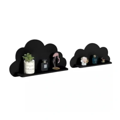 Set of 2 Cloud Shaped Floating Wall Shelf Decorative Bedroom Nursery Display Unit Child's Shelves Children’s Themed Boy/Girl (Black)