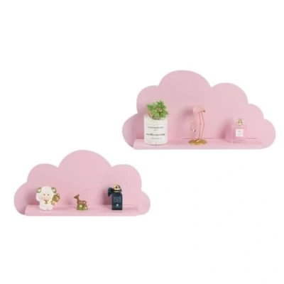 Set of 2 Cloud Shaped Floating Wall Shelf Decorative Bedroom Nursery Display Unit Child's Shelves Children’s Themed Boy/Girl (Pink)