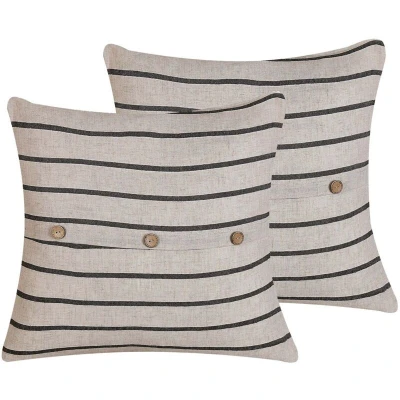 Set of 2 Decorative Throw Cushions Striped Buttons 43x43 Beige and Black Cynara