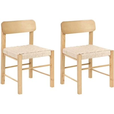 Set of 2 Dining Chairs Light Brown Rubberwood Paper Rope Woven Seat Boho Style Kitchen Room ALLOS