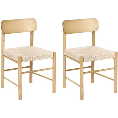 Set of 2 Dining Chairs Light Brown Rubberwood Paper Rope Woven Seat Boho Style Kitchen Room DIGNE