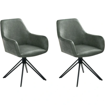 Upholstered Chair on Swivel Base. This set of two dining chairs makes a stylish and practical addition to any modern home. Upholstered in soft, durable faux leather, they feature a classic bucket-shaped seat. The look is finished with sleek black metal legs and a handy 180-degree swivel function, making them effortlessly versatile for everyday dining. Details: Product Type: Dining Chair General Color: Green, Black Frame Colour: Black Shade: Dark Green Material Type: Faux Leather Main Material: Faux Leather Additional Material: Iron Filling Material: Foam Frame Material: Metal Legs material: Metal Seat Material: Faux Leather Material Composition: 100% PU Leather Armrests: Yes Stackable: No Dimensions: Armrests Height: 63 cm Depth: 59 cm Seat Thickness: 10 cm Seat Height: 49 cm Width: 57 cm Height: 85 cm Seating Surface: 42x40 cm Weight: 9 kg Weight Capacity: 120 kg Offer Includes: 2 x Chair Key Features: 180° Swivel, Curved Shape for Maximum Comfort, Timeless Design, Makes Your