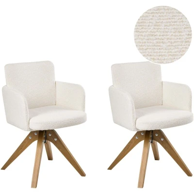 Set of 2 Dining Chairs Swivel EVELYN Boucle Off White