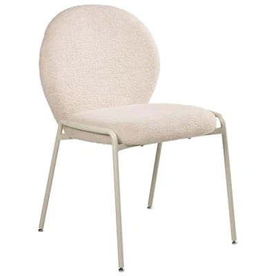 Teddy Upholstered Dining Chairs. Bring a touch of soft, modern elegance to your home with this set of two dining chairs. They feature a beautiful boucle fabric that feels as good as it looks, paired with slim, pale metal legs for a clean finish. The curved backrest is designed for comfort, and thanks to the neutral, airy tones, these chairs are a perfect fit for literally any interior style. Details: Product Type: Dining Chair Style: Minimalist General Color: Beige Frame Colour: White Shade: Light Beige Material Type: Fabric Main Material: Boucle Additional Material: Iron Frame Material: Metal Legs material: Metal Seat Material: Boucle Material Composition: 100% Polyester Armrests: Yes Stackable: No Dimensions: Depth: 65 cm Seat Height: 50 cm Width: 56 cm Height: 83 cm Seating Surface: 51x47 cm Weight: 7 kg Weight Capacity: 120 kg Offer Includes: 2 x Chair Key Features: Top-Notch Sitting Comfort, Elegant Design, High-Quality Materials, Leg Caps for Surface Protection Assembly