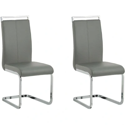 Set of 2 Faux Leather Grey Cantilever Dining Chairs Greedin