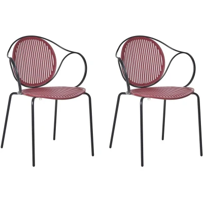 Set of 2 Garden Chairs Red and Black Steel Frame Stackable Ribbed Back Outdoor Patio Modern IKARIA