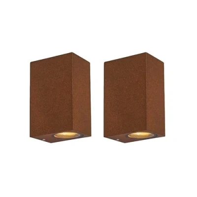 QAZQA Set of 2 Industrial Wall Lights Rust Brown IP44 - Baleno Video The Baleno I is a real eye-catcher for in and around your home. It provides a beautiful wash of light along the wall. This is super beautiful when it's dark! The lamp has two GU10 fittings and is delivered without light sources, so make sure you order these separately. It is also dimmable so you can create a cozy atmosphere (dimmer not included). The Baleno I is 9 cm deep, 6.5 cm long and 7.9 cm high. The mounting plate has a length of 6.5 cm and a width of 7.5 cm. The aluminium used, the rust colour and the shape give the lamp a sleek touch, making it best suited for an industrial setting. The Baleno I is really suitable for outdoors due to its IP rating of IP44, but can also be placed in the bathroom indoors. Are you still looking for a super modern (outdoor) Wall Light? You've found it! Now even more affordable as a set of two! Bulb holder: GU10 . Max 1 x 35 W, 230 V Suitable for: Halogen, Led, Energy saving