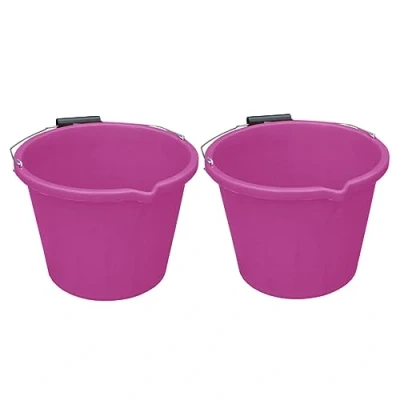 Set of 2 Pink Plastic Builders Bucket 3 Gallon 14 Litre Water Mixing Storage Strong with Measuring Guide, Handle And Spout (Made in U.K)