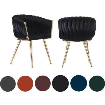 ManoManoThe Roma LUX Velvet Dining Chair combines elegance and functionality with its plush velvet upholstery, woven knot detailing, and sturdy gold-colored metal frame. Designed with comfort in mind, it features high-density foam that maintains its shape over time, an ergonomic backrest, and a supportive footrest, making it perfect for long sittings. With a weight capacity of 250 lbs, the chair is lightweight and easy to move, complete with protective pads on each leg to prevent floor damage and reduce noise. Ideal for any room - whether itโs your dining area, bedroom, or office. This chair blends vintage charm with modern style, enhancing any space with luxury and sophistication.