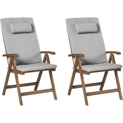 Set of 2 Rustic Garden Chairs Natural Acacia Wood Adjustable Foldable with Armrests Grey Melange Cushions Amantea Premium