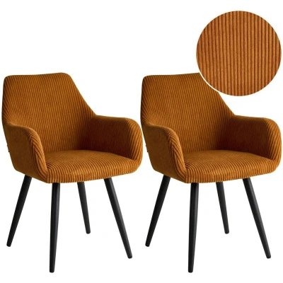 Set of 2 Upholstered Corduroy Accent Dining Chairs with Armrests Modern Design Metal Base Orange Mori