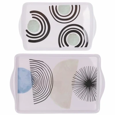 Set of 2 Venice Lido Modern Melamine Trays Geometric Decoration Large Tray Measurements: L 46 x D. 29 cm. Small tray measures: L. 38.5 x d. 24 cm Colour: multicolour Hand wash recommended, if in the dishwasher store on the top shelf Not suitable for use in the microwave Avoid direct contact with food Set of 2 Venice Lido Modern Melamine Trays Geometric decor; Large tray measurements: L 46 x d. 29 cm Small tray measurements: L. 38.5 x 24 cm; Colour: Multicolour Hand wash recommended, if in the dishwasher store in the top shelf; Not suitable for microwave use