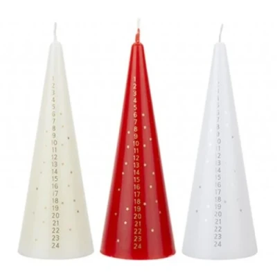 AmazonElegant cone shaped advent candles to light during advent and the count down to Christmas Day 1 of each colour shown - red, white and ivory Great value by buying together Each approx 15cm tall, base diameter 5.5cm Size: 5.5 X 15CM