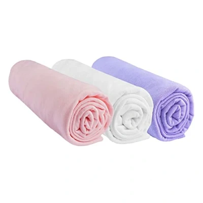 Set of 3 Fitted Sheets 60 x 120 cm for Baby Crib, Cot and Umbrella Bed 100% Cotton Pink White Mauve Stretchy Breathable Healthy Sleep Brand Easy dort Oeko Tex Made in Europe