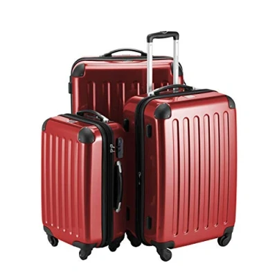 Set of 3 Hard Shell Suitcase Trolley Glossy red Hauptstadtkoffer incl Combination Lock 4 Wheels