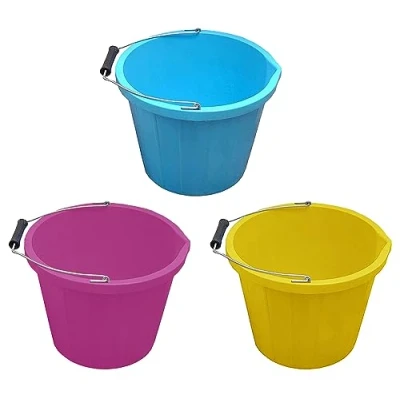 Set of 3- Plastic Builders Bucket 3 Gallon 14 Litre Water Mixing Storage Strong with Measuring Guide, Handle And Spout EASY TO USE - This bucket is ideal for carrying bricks, mixing, plastering, plumbing, landscape gardening, fishing, mechanics etc. UK MADE - Made with Strong Plastic and durable with a Metal handle, Eliminates general breaks that normally occur from excessive use. MULTI USE - Suitable for a range of garden or household jobs, Incorporating a strong metal handle with a black Rubber grip on Handle to make carrying easier and more comfortable. FUNCTIONAL SPOUT - Bucket features and easy to pour spout to reduce any spillage on your job. Gallon / 14 Litre - This durable builders bucket is designed to hold 3 gallons of liquid (about 14 litres).