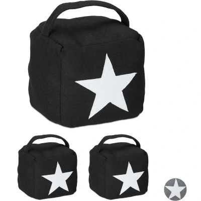 Set of 3 Relaxdays Star Door Stops, Fabric Bumper, Floor Doorstop, Tall, with Handle, HxWxD: 20 x 15 cm, Black