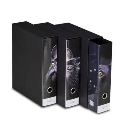 Set of 3 Ring Binders, Colour Code, Black, Dog Theme, Glossy Plasticised, Ideal for A4 Sheets, Lever Mechanism