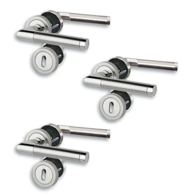 Set of 3 Rosette V Door Fittings, Polished Stainless Steel/Satin Finish for Room Doors with Deadlock Holes, Cliprosette, Diameter 52 mm, Handle, Handle