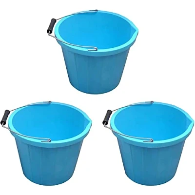 Set of 3 Sky Blue Plastic Builders Bucket Gallon 14 Litre Water Mixing Storage Strong with Measuring Guide, Handle And Spout (Made in U.K)