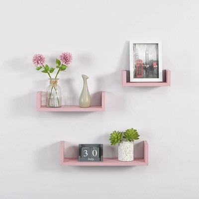 Set of 3 U Shape Floating Wall Shelve Storage Display Shelf Blush