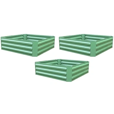 Set of 3 x Metal Raised Vegetable Beds in Green (100cm 100cm 30cm)