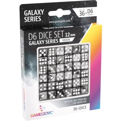 VARIETY AND QUALITY: With 36 six-sided 12mm dice, this set offers an impressive variety for all your gaming needs. The dice are made of premium acrylic, ensuring superior quality and increased durability. CAPTIVATING DESIGN: The Galaxy series offers stunning cosmic colors and brilliant effects through the addition of shimmering elements. Each roll of dice becomes a unique and exciting visual experience. COMFORT AND LISIBILITY: All dice have smooth round edges, providing optimal handling comfort. In addition, the size of the dots is perfectly suitable, ensuring clear and pleasant visibility during your game games. ELEGANCE PRESENTATION: The dice are presented in a cardboard box with a small transparent window, allowing you to see all the dice at the front. This adds a touch of elegance to your collection of games and makes storage and transport easy. ADAPTABILITY AND PROTECTION: With a standard size of D6 (12mm), these dice are compatible with a wide variety of board and role games. In addition, their careful packaging in a cardboard box with transparent window ensures optimal protection during transport and storage, preserving their quality and aesthetics., Manufacturer: Gamegenic