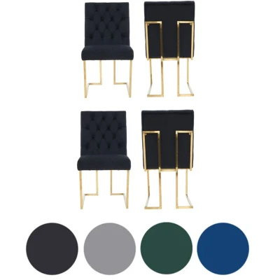Set of 4 Black Siena Luxury Tufted Velvet Dining Chairs with Gold Frame & Legs Modern Upholstered Accent Chair