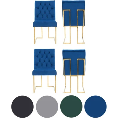 Set of 4 Blue Siena Luxury Tufted Velvet Dining Chairs with Gold Frame & Legs Modern Upholstered Accent Chair
