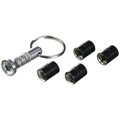 SET of 4 Lockable Valve Caps Silver / Black with Key