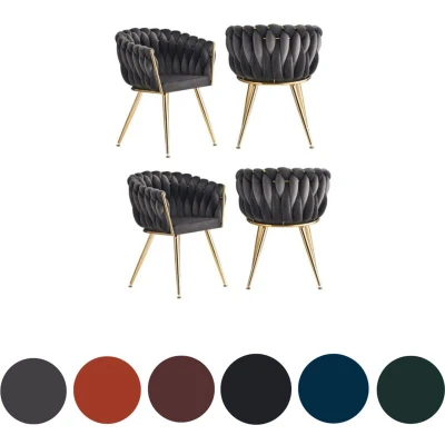 ManoManoThe Roma LUX Velvet Dining Chair combines elegance and functionality with its plush velvet upholstery, woven knot detailing, and sturdy gold-colored metal frame. Designed with comfort in mind, it features high-density foam that maintains its shape over time, an ergonomic backrest, and a supportive footrest, making it perfect for long sittings. With a weight capacity of 250 lbs, the chair is lightweight and easy to move, complete with protective pads on each leg to prevent floor damage and reduce noise. Ideal for any room - whether itโs your dining area, bedroom, or office. This chair blends vintage charm with modern style, enhancing any space with luxury and sophistication.