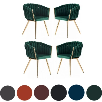 Set of 4 Roma Modern Velvet Dining Chairs Ergonomic Curved back with Gold Metal Frame Armchair for Room Kitchen Living Green