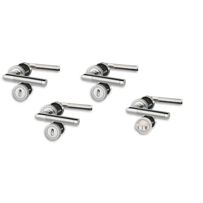 Set of 4 Rosette V Door Fittings, Polished Stainless Steel/Satin Finish for 3 Room Doors with Deadlock Holes and 1 Bathroom Toilet Door, Cliprosette, Diameter 52 mm, Handle, Handle