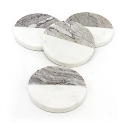 Set Of 4 Two Tone Natural Marble Coasters For Drinks Round