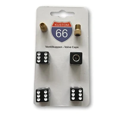 4 valve caps – black cube + 2 bicycle adapters for small bicycle valves Original KUSTOM66 EAN: 4260490174537 Suitable for any car, motorcycle and bicycle Great for motorcycles, Harleys, custom bikes, etc. Perfect as a gift for any occasion.
