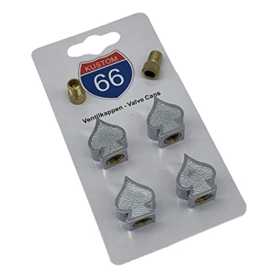 4 valve caps - PIK silver - + 2 bicycle adapters for small bicycle valves Original KUSTOM66 EAN: 4260490171802 Suitable for any car, motorcycle and bicycle Great for motorcycles, Harleys, custom bikes, etc. Perfect as a gift for any occasion.